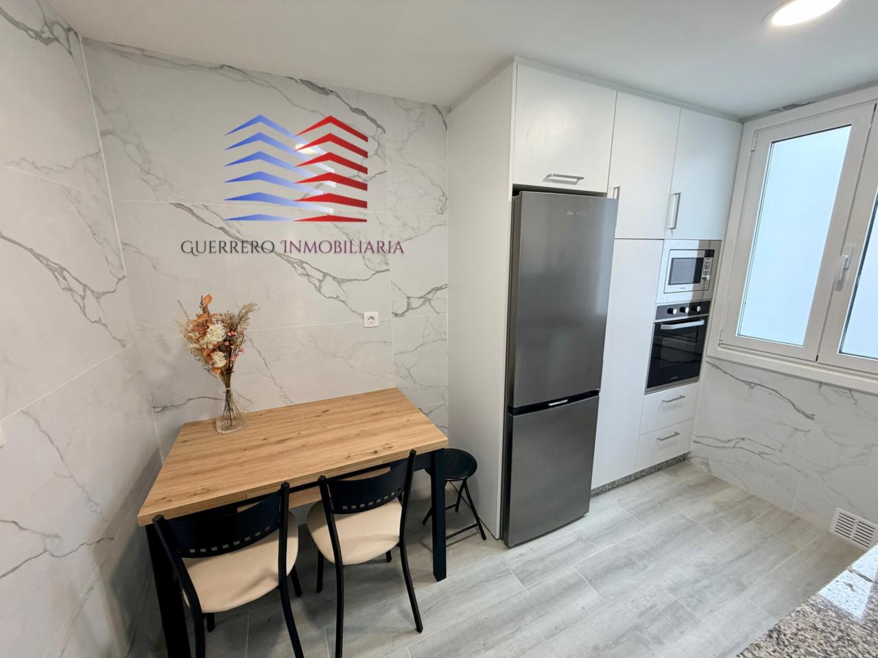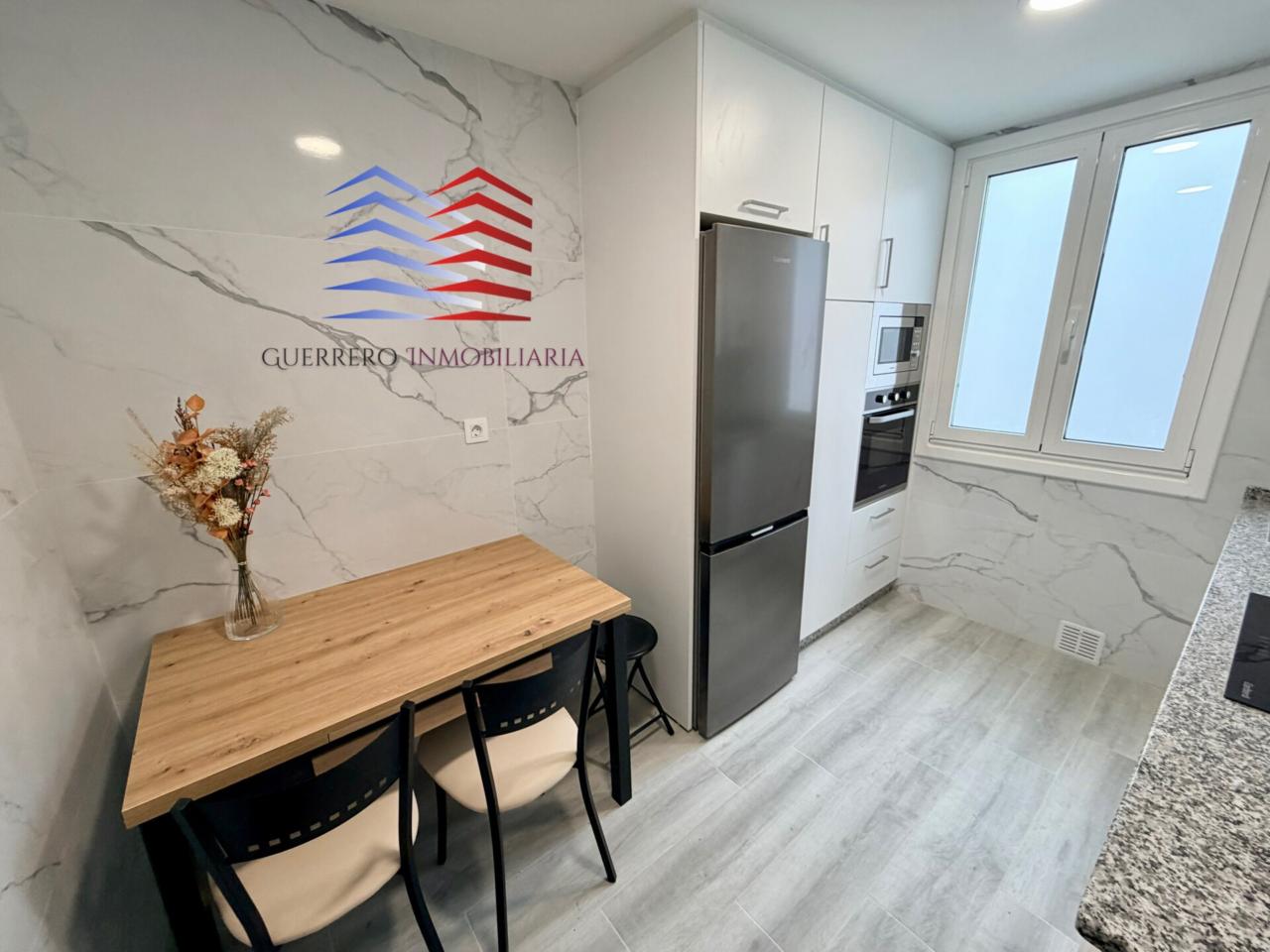 La vivienda se encuentra totalmente amueblada y preparada para entrar a vivir. Cuenta además con cocina equipada con lavavajillas, armarios empotrados, calefacción de gas ciudad, suelos de tarima flotante y ventanas de doble cristal, aportando confort y eficiencia en el día a día