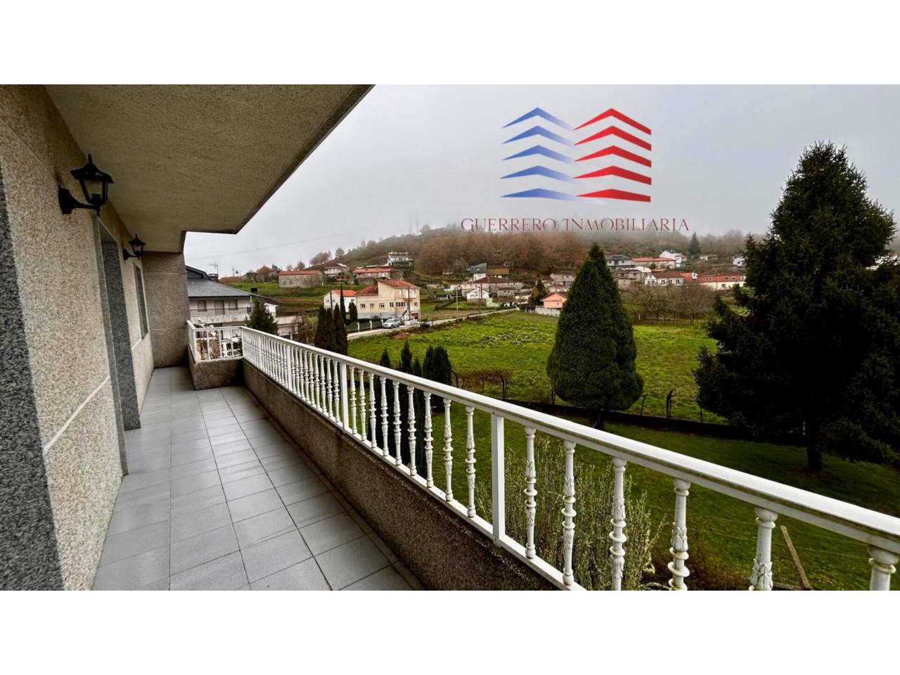 Como valor añadido, la propiedad incluye un garaje de aproximadamente 100 m² situado frente a la vivienda, con capacidad para unos cuatro vehículos, además de dos balcones, destacando uno superior amplio tipo terraza perfecto para disfrutar del entorno